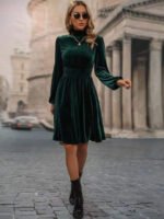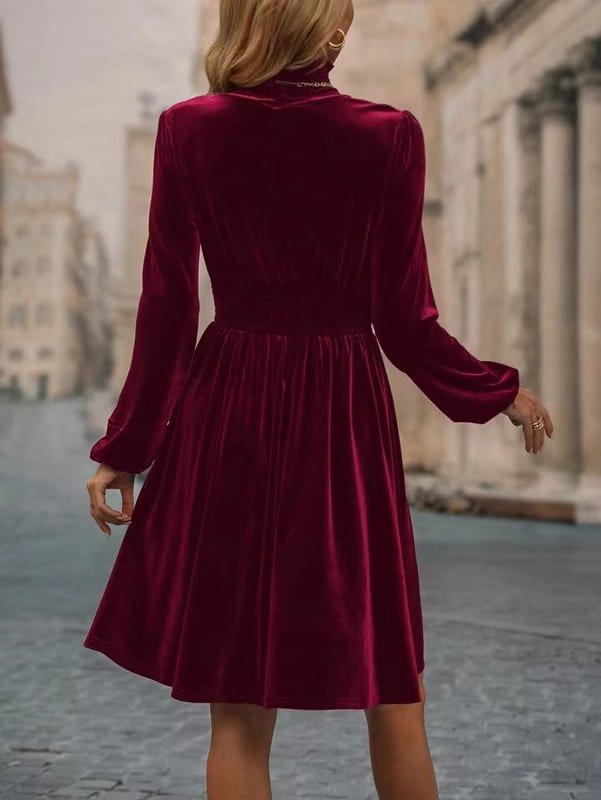 Be the first to review “Graceful Stand Collar Solid Color Velvet Long Sleeve Dress”